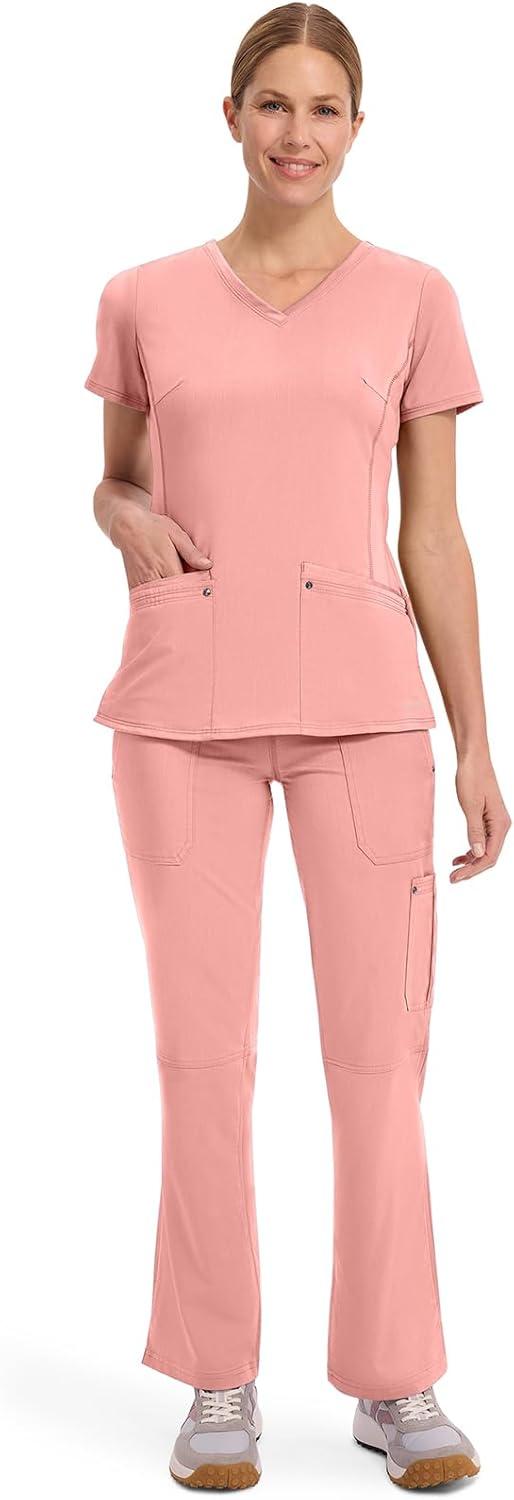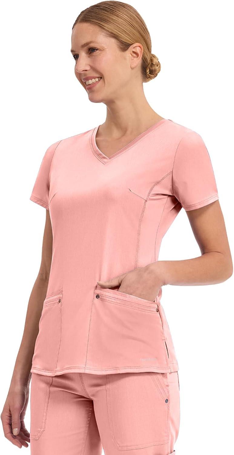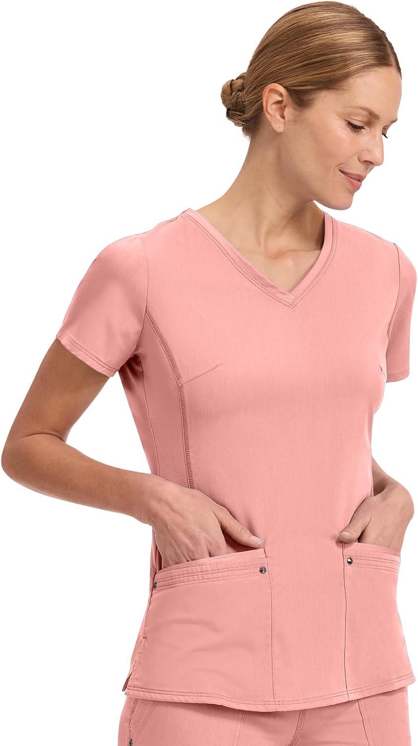 Healing Hands Women’s Scrub Top V-Neck with 2 Pockets, 2-Way Stretch, and Yoga Knit Side Panels for Slim Fit- 2245(Blushing Peach)