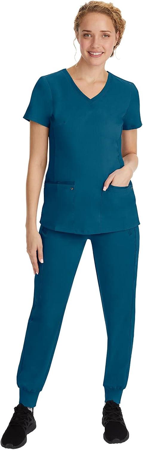 Healing Hands Women’s Scrub Top V-Neck with 2 Pockets, 2-Way Stretch, and Yoga Knit Side Panels for Slim Fit- 2245(Caribbean)