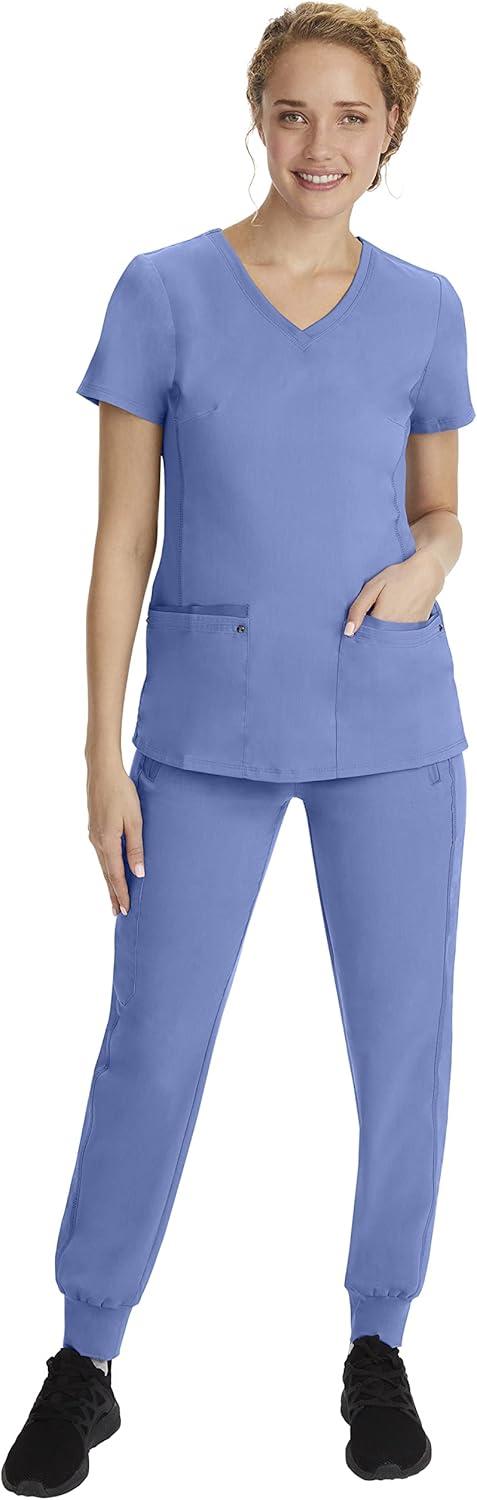 Healing Hands Women’s Scrub Top V-Neck with 2 Pockets, 2-Way Stretch, and Yoga Knit Side Panels for Slim Fit- 2245(Ceil)