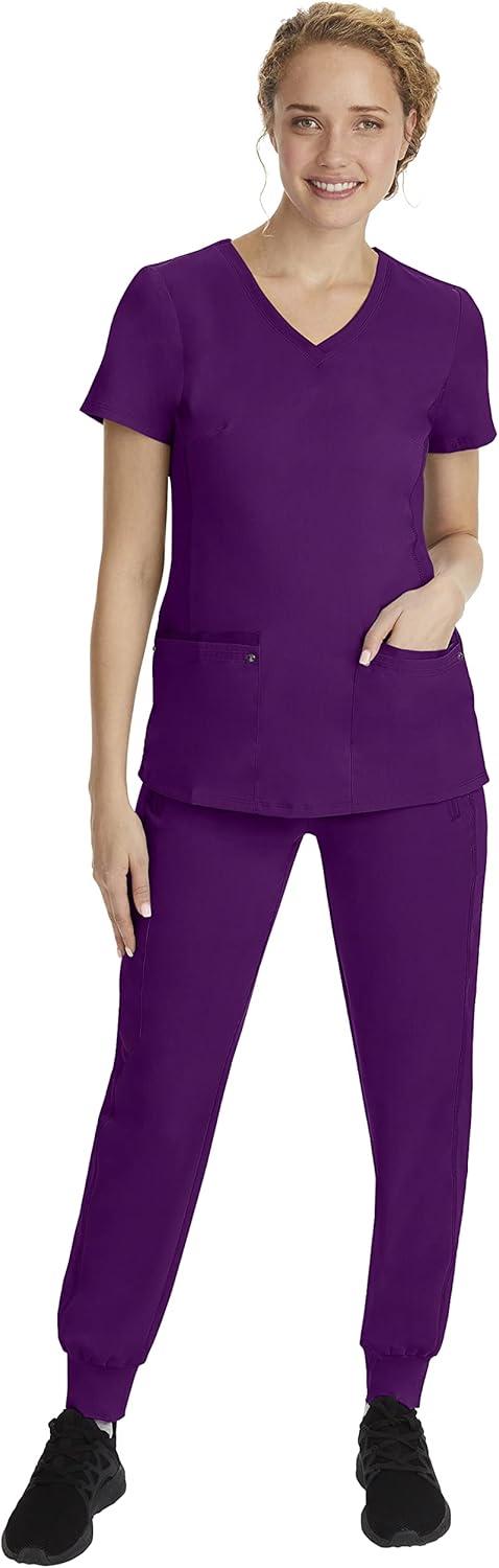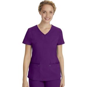 Healing Hands Women’s Scrub Top V-Neck with 2 Pockets, 2-Way Stretch, and Yoga Knit Side Panels for Slim Fit- 2245(Eggplant)