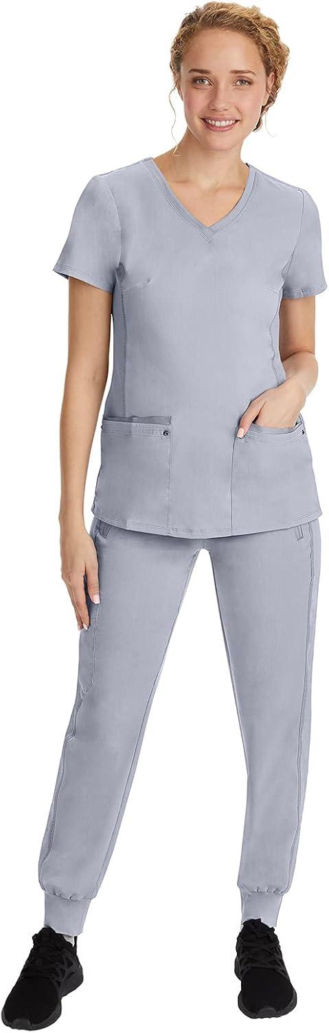 Healing Hands Women’s Scrub Top V-Neck with 2 Pockets, 2-Way Stretch, and Yoga Knit Side Panels for Slim Fit- 2245(Grey)