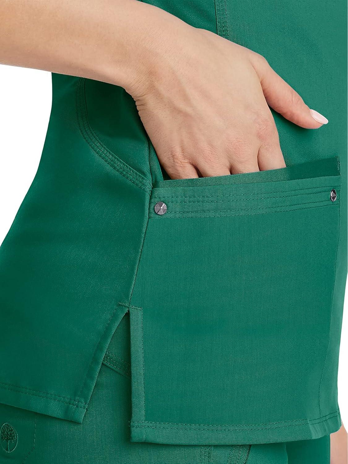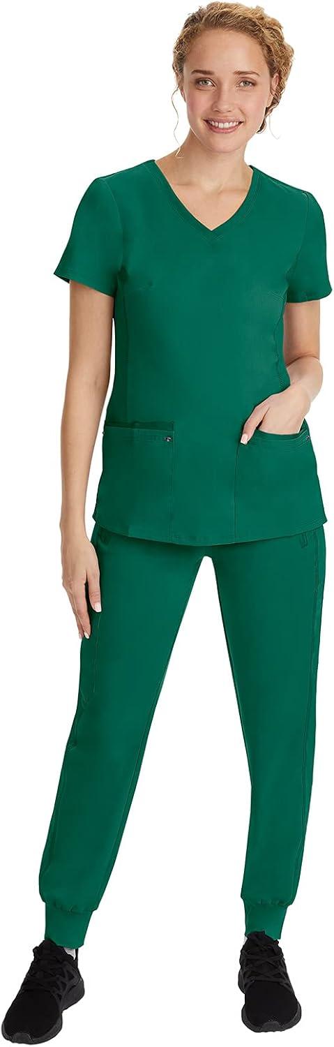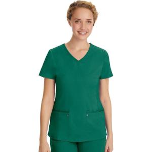 Healing Hands Women’s Scrub Top V-Neck with 2 Pockets, 2-Way Stretch, and Yoga Knit Side Panels for Slim Fit- 2245(Hunter)