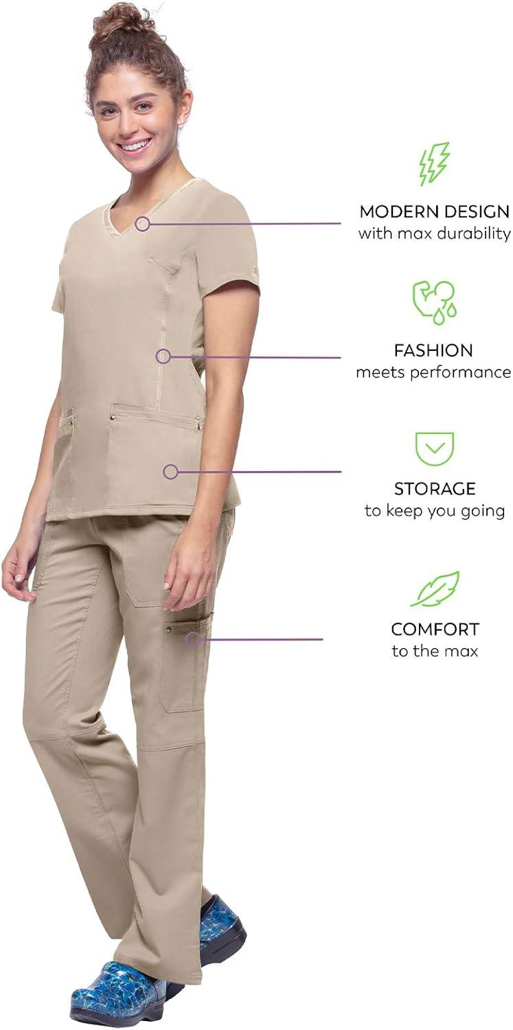Healing Hands Women’s Scrub Top V-Neck with 2 Pockets, 2-Way Stretch, and Yoga Knit Side Panels for Slim Fit- 2245(Khaki)