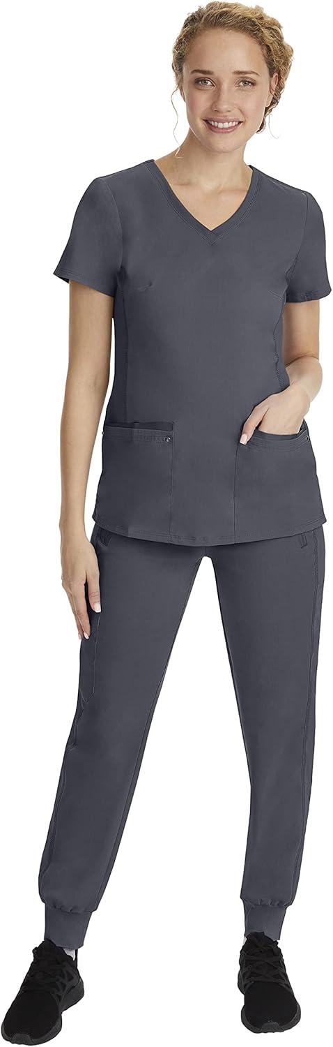 Healing Hands Women’s Scrub Top V-Neck with 2 Pockets, 2-Way Stretch, and Yoga Knit Side Panels for Slim Fit- 2245(Pewter)
