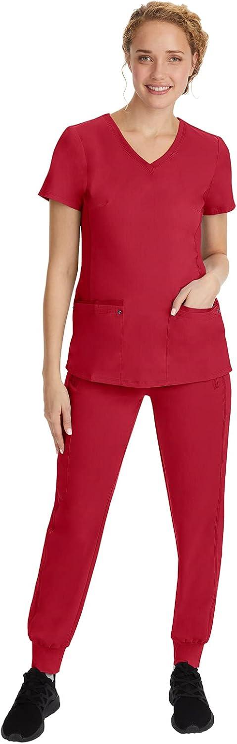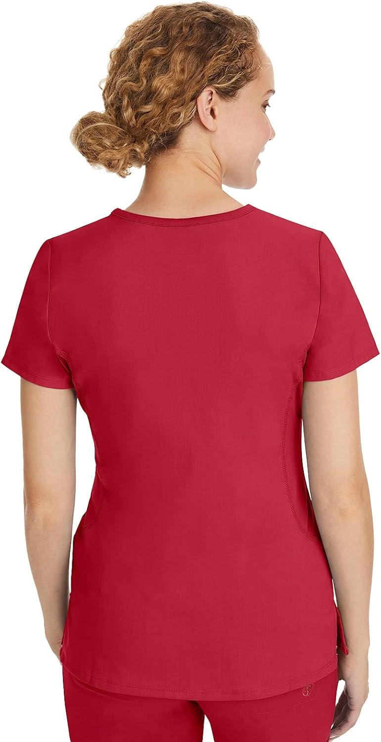 Healing Hands Women’s Scrub Top V-Neck with 2 Pockets, 2-Way Stretch, and Yoga Knit Side Panels for Slim Fit- 2245(Red)
