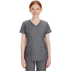 Healing Hands Women’s Scrub Top V-Neck with 2 Pockets, 2-Way Stretch, and Yoga Knit Side Panels for Slim Fit- 2245(Heather Grey)
