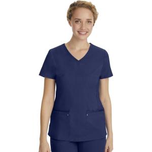 Healing Hands Women’s Scrub Top V-Neck with 2 Pockets, 2-Way Stretch, and Yoga Knit Side Panels for Slim Fit- 2245(Navy)