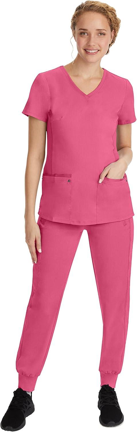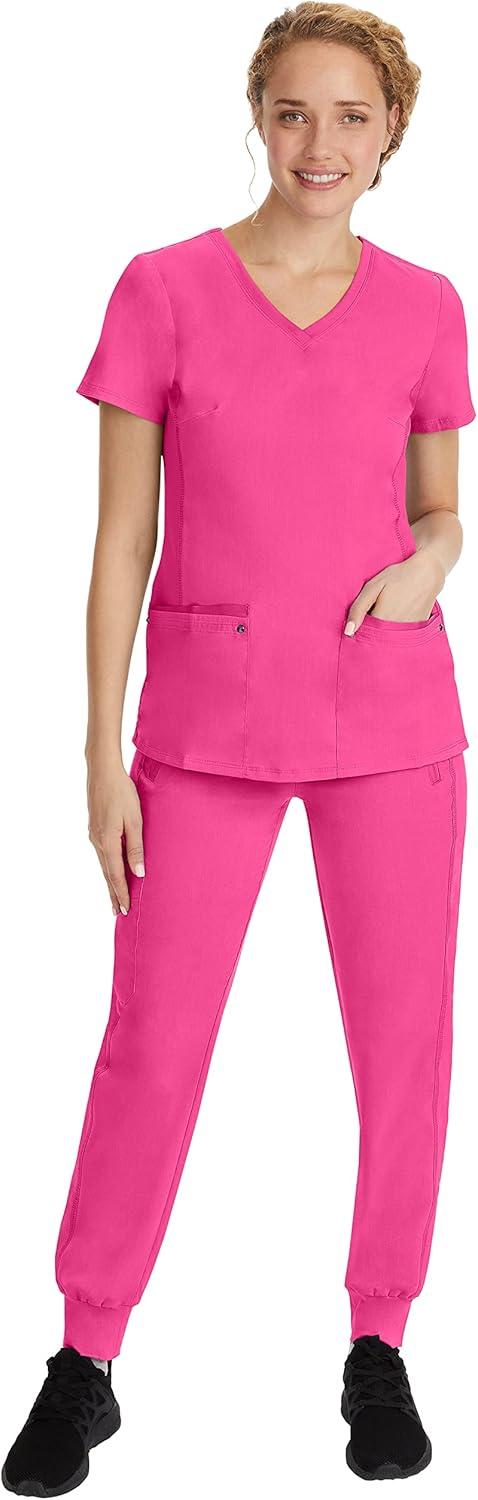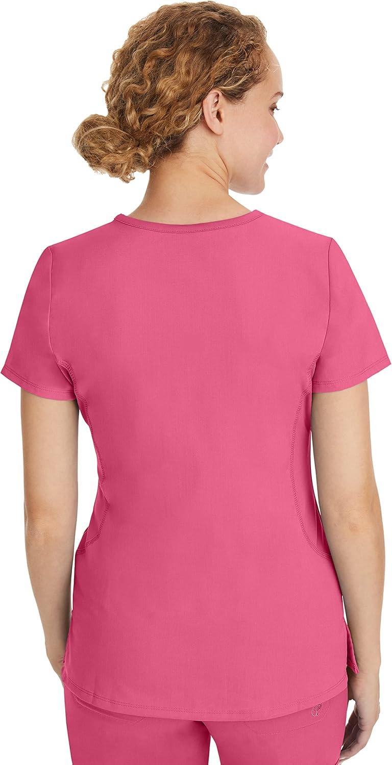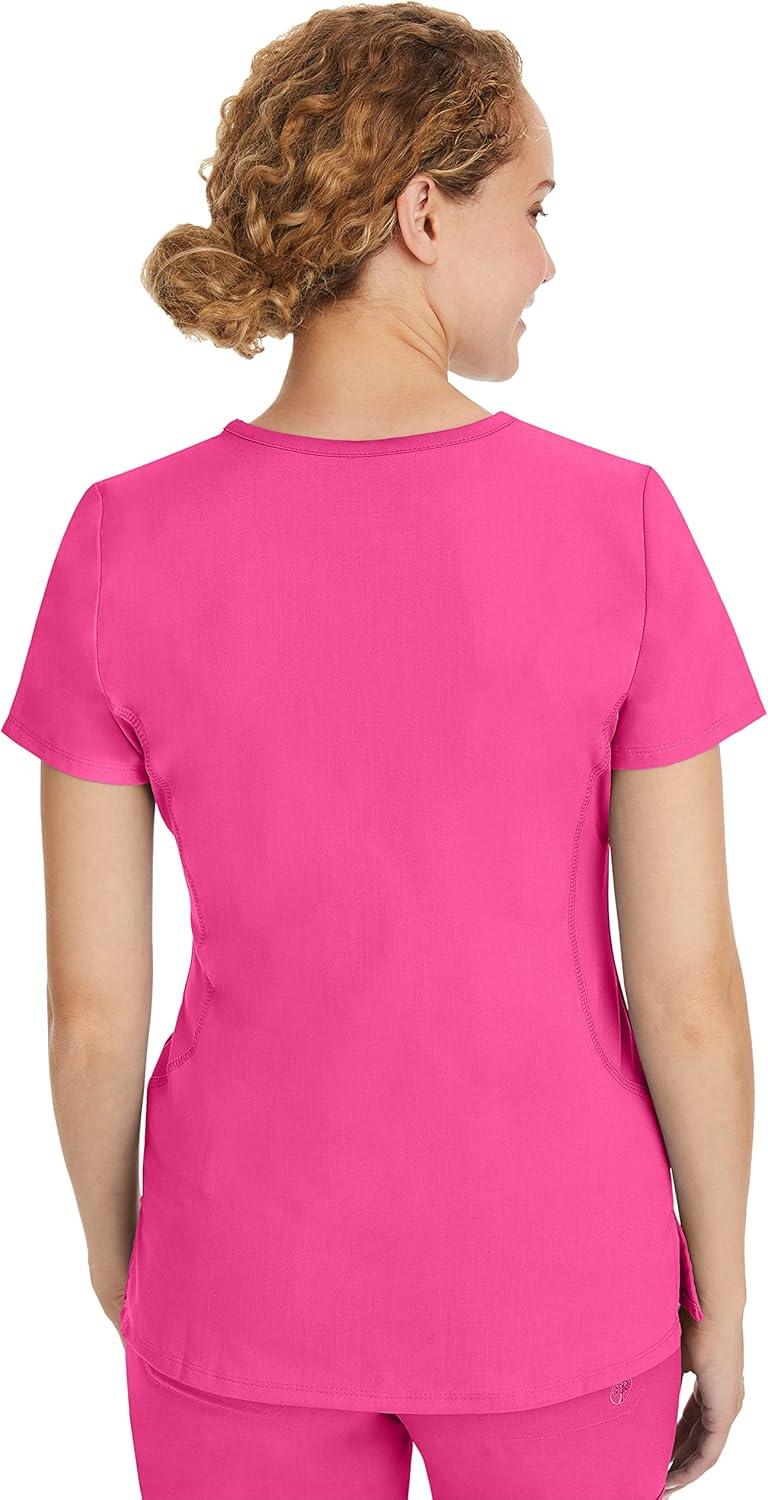 Healing Hands Women’s Scrub Top V-Neck with 2 Pockets, 2-Way Stretch, and Yoga Knit Side Panels for Slim Fit- 2245(Shocking Pink)