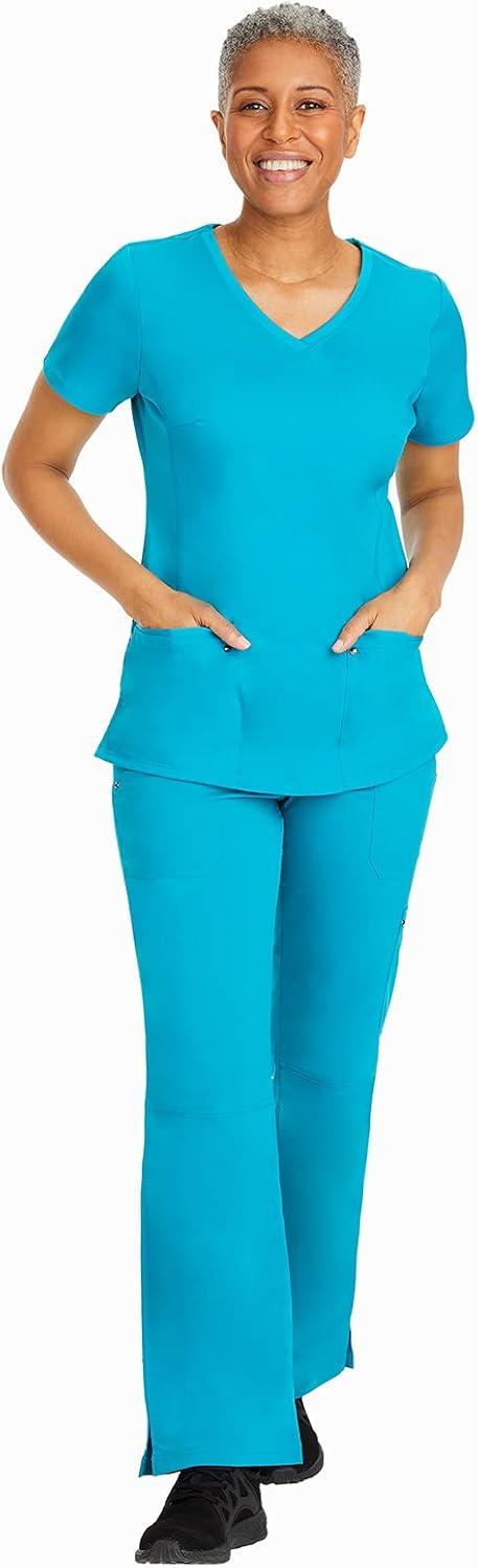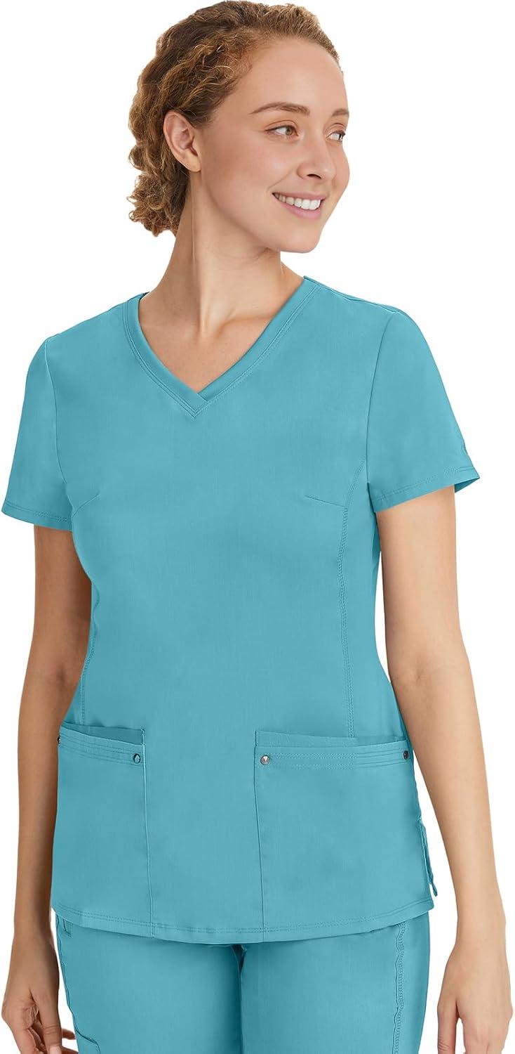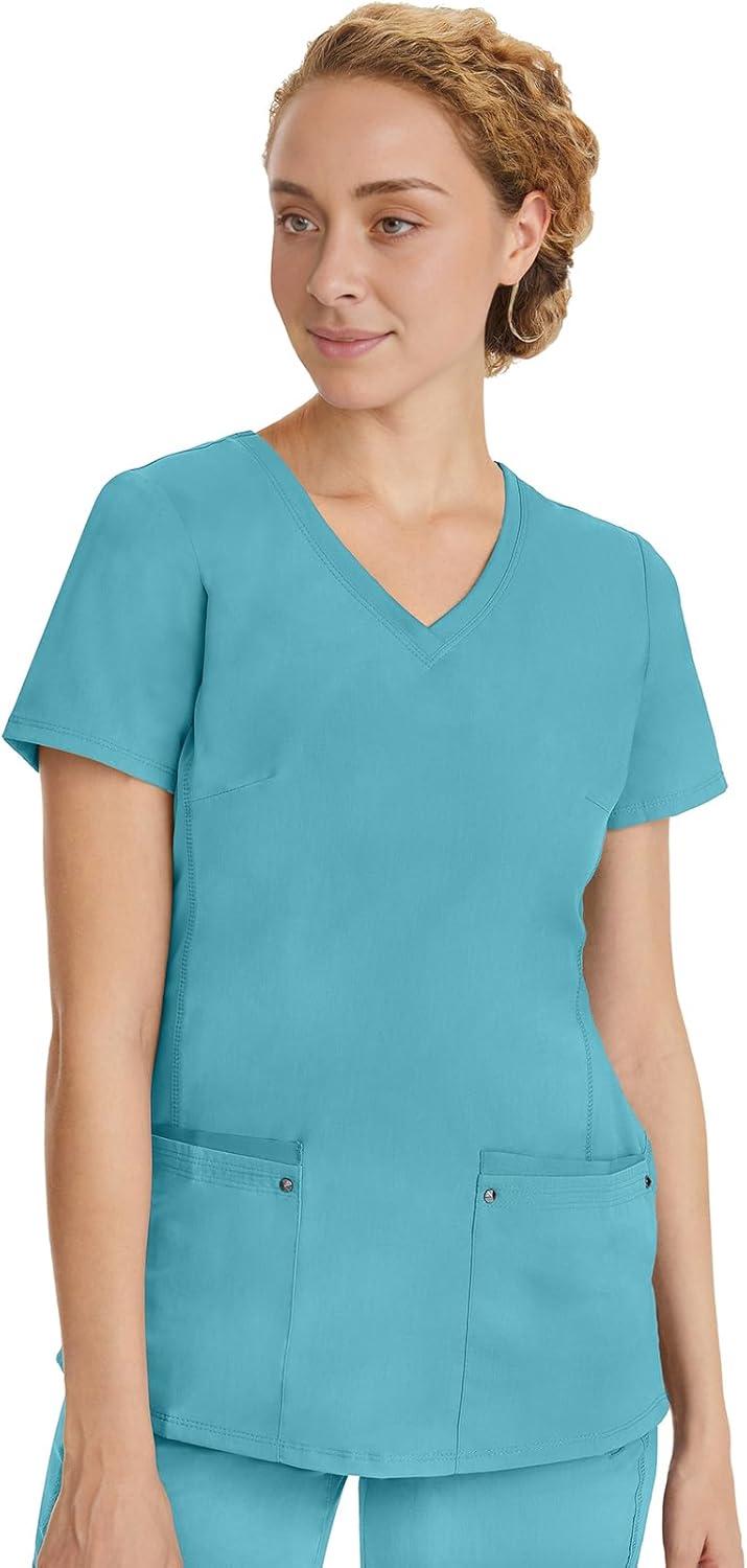 Healing Hands Women’s Scrub Top V-Neck with 2 Pockets, 2-Way Stretch, and Yoga Knit Side Panels for Slim Fit- 2245(Caribbean)
