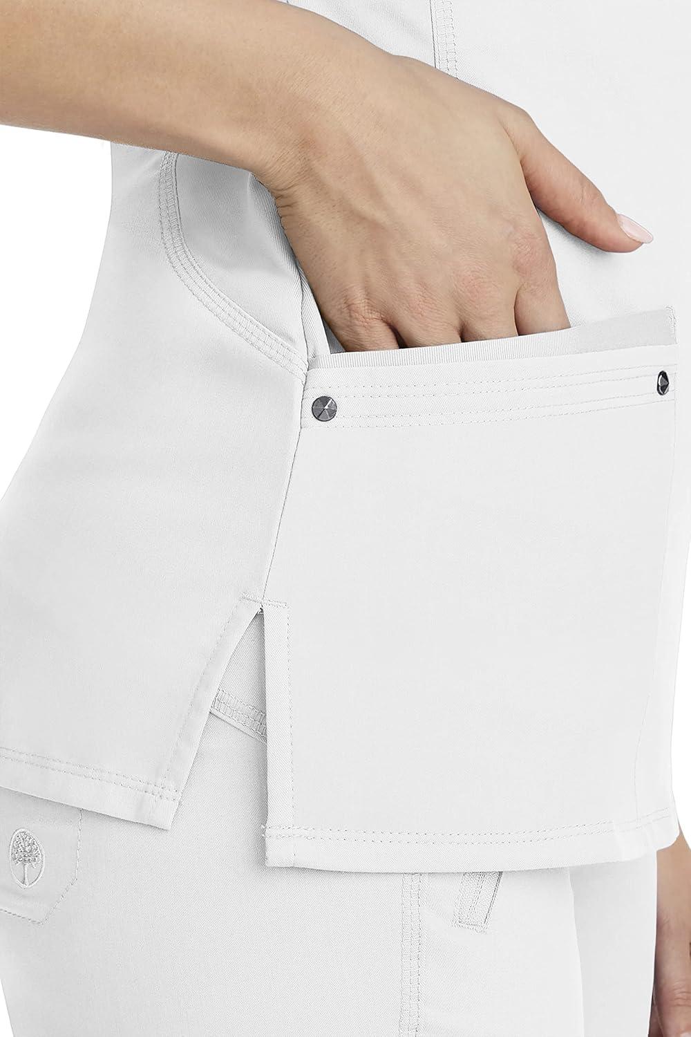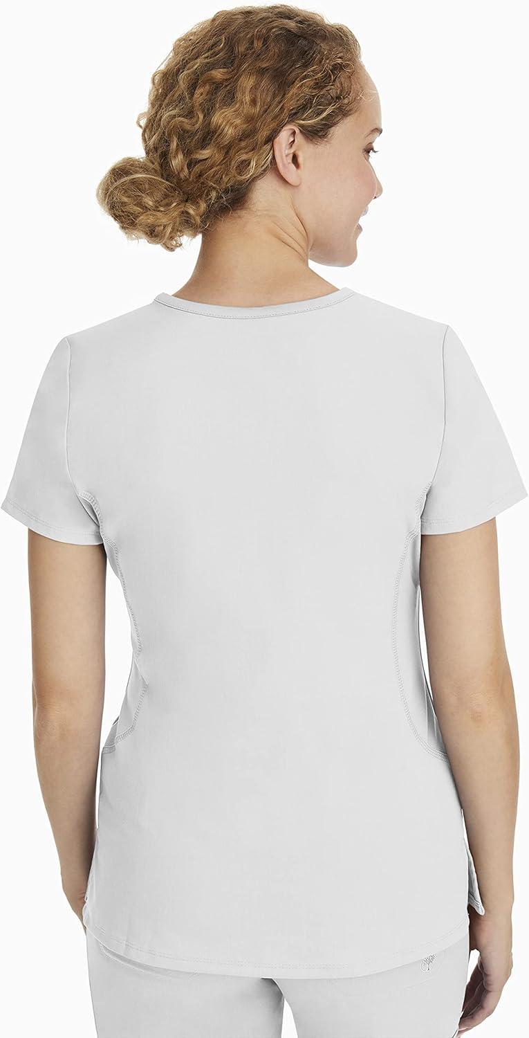 Healing Hands Women’s Scrub Top V-Neck with 2 Pockets, 2-Way Stretch, and Yoga Knit Side Panels for Slim Fit- 2245(White)