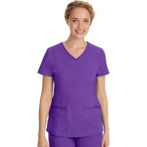 Healing Hands Women’s Scrub Top V-Neck with 2 Pockets, 2-Way Stretch, and Yoga Knit Side Panels for Slim Fit- 2245(True Grape)