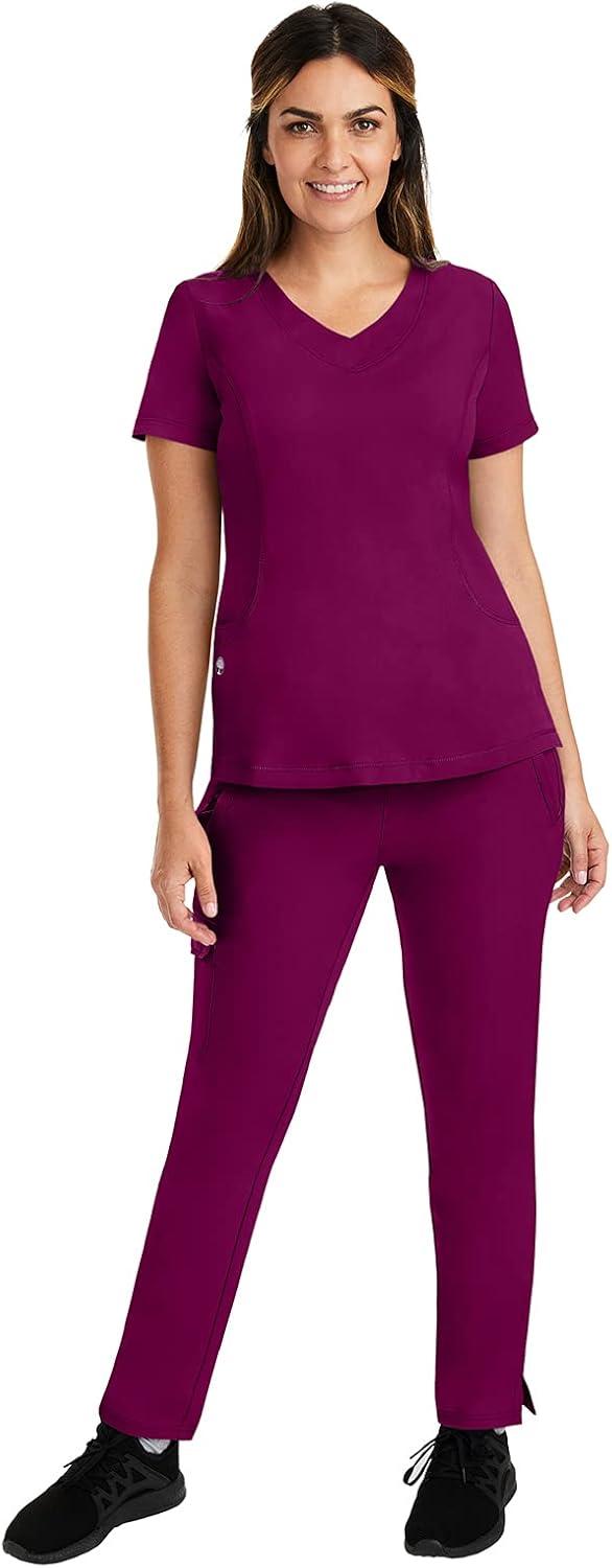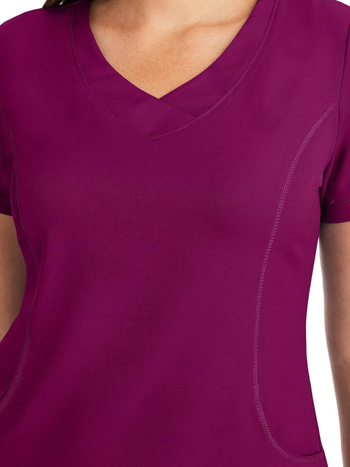 Healing Hands 4 Pocket Women Scrub Top V-Neck HH360 2264 Sloan Scrubs for Women Stretch Fabric(Wine)