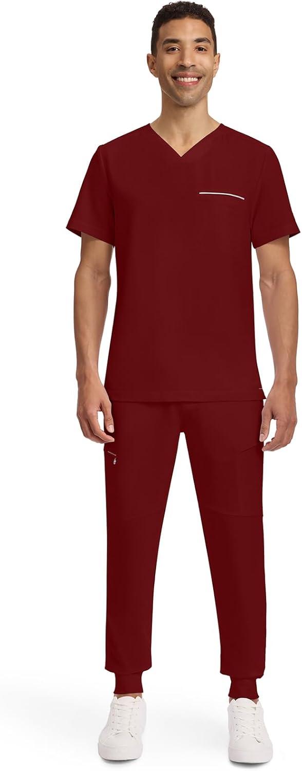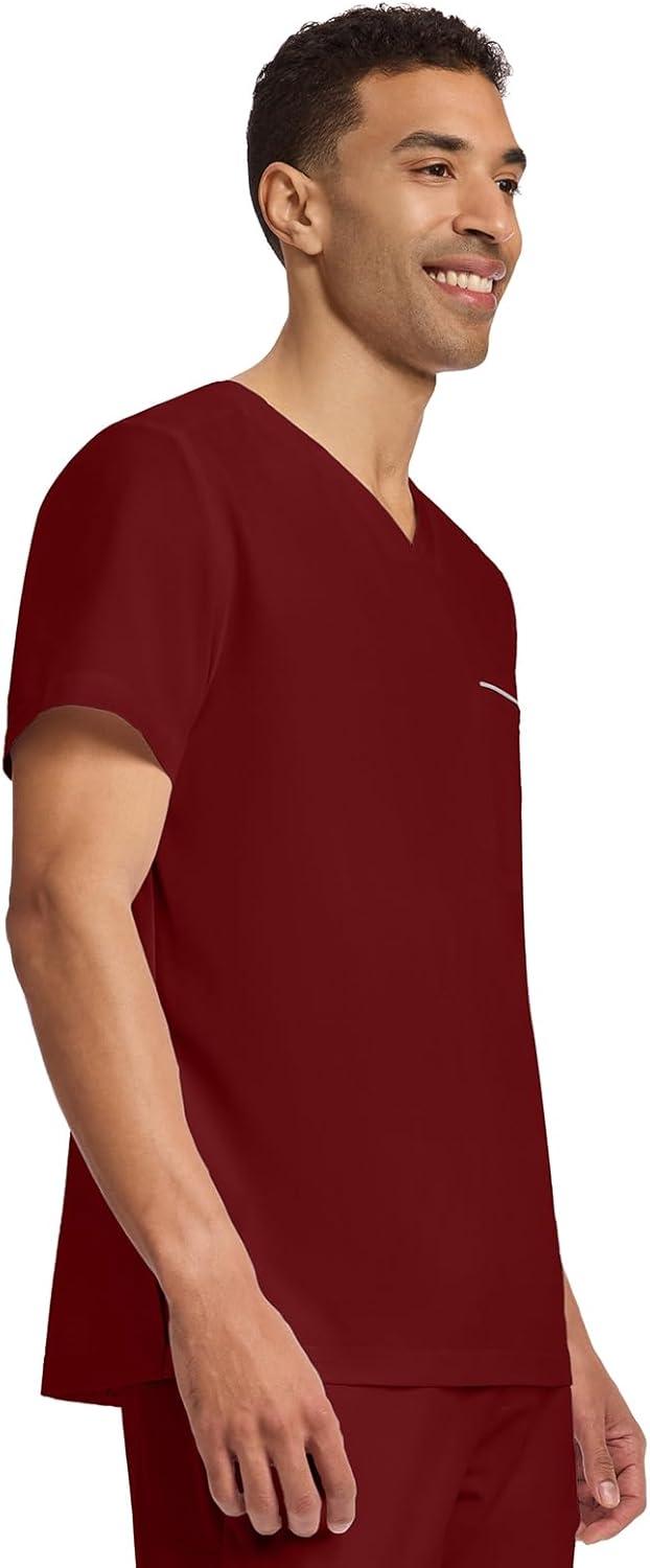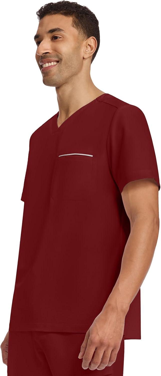 Healing Hands Men’s Medical Scrub Top Spencer with 1 Pocket, Moisture Wicking, 360° Stretch & Recycled Fibers – 2381(Garnet Red)