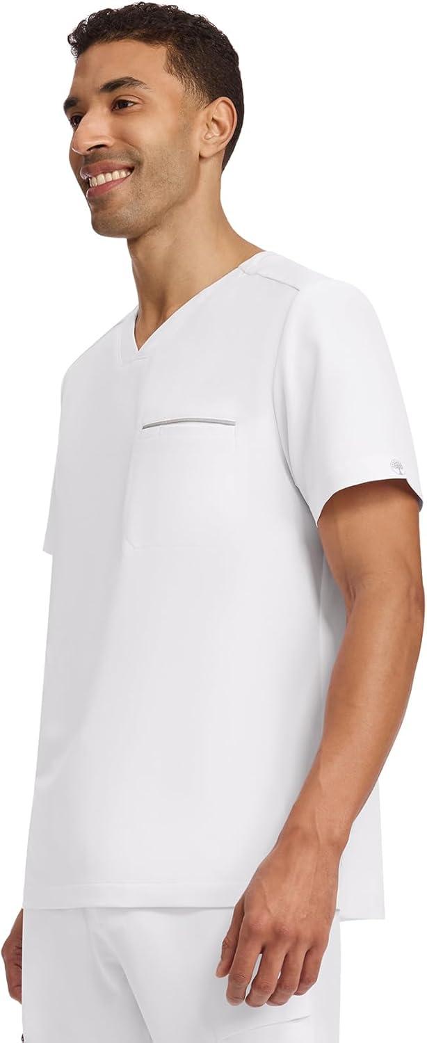 Healing Hands Men’s Medical Scrub Top Spencer with 1 Pocket, Moisture Wicking, 360° Stretch & Recycled Fibers – 2381(White)
