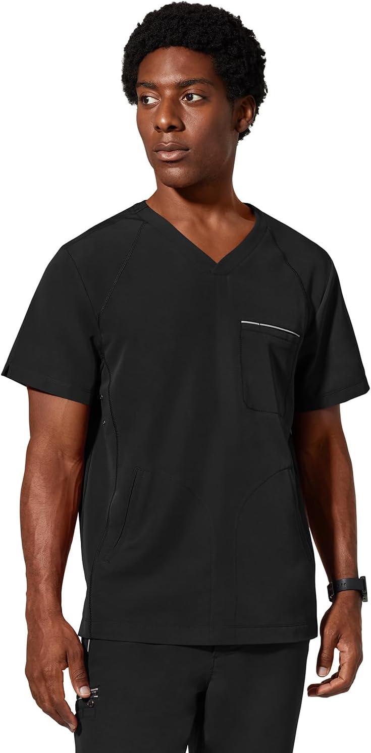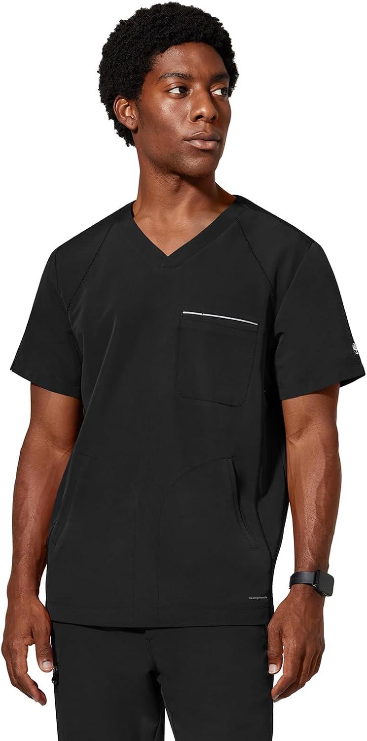 Healing Hands Men’s Scrub Top Steven Top with 3 Pockets, Moisture Wicking, 360° Stretch & Recycled Fibers – 2382(Black)
