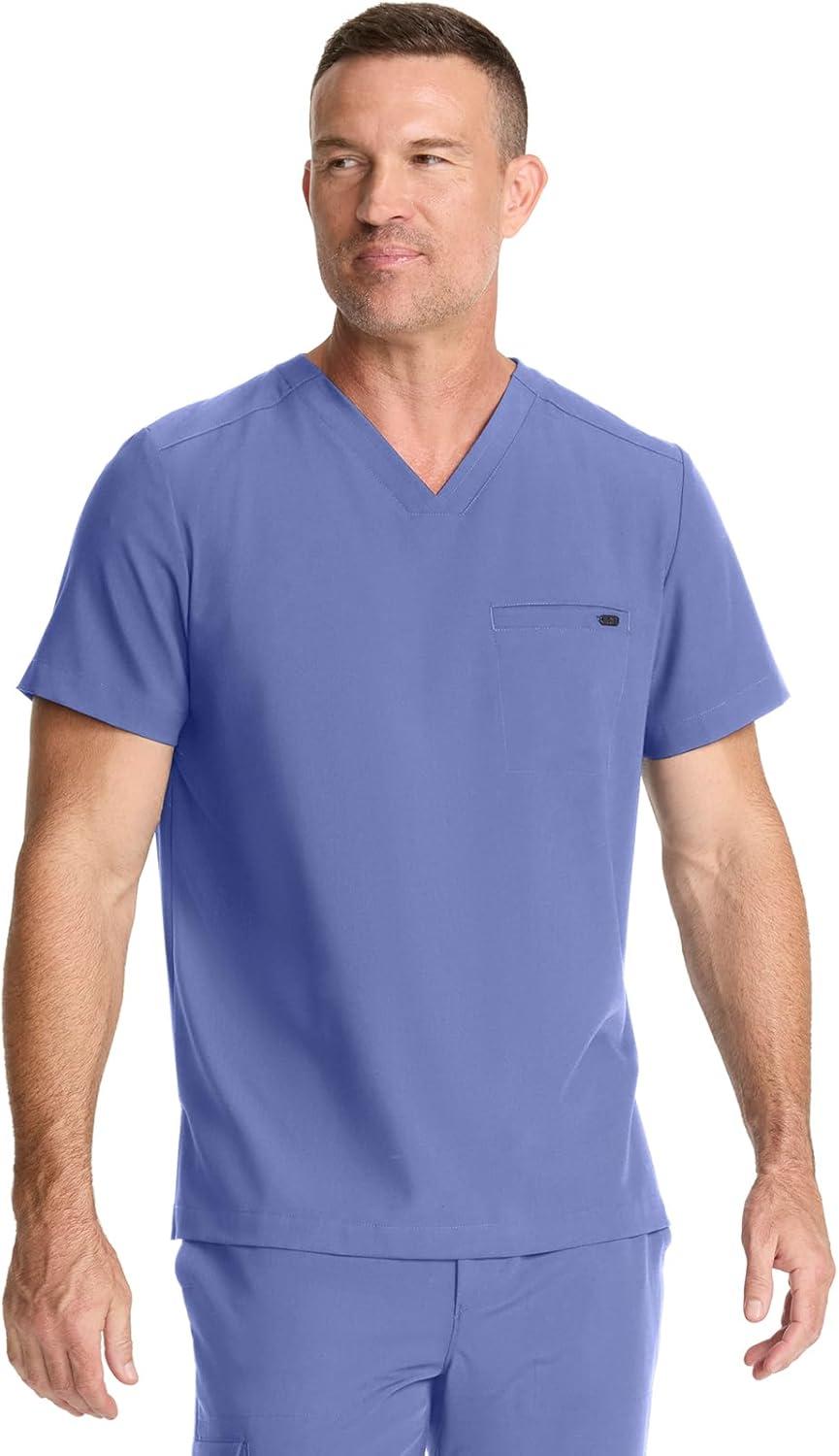 Healing Hands Mens Scrub Top V-Neck with 1 Pocket & 360° Stretch Fabric HH758(Ceil)