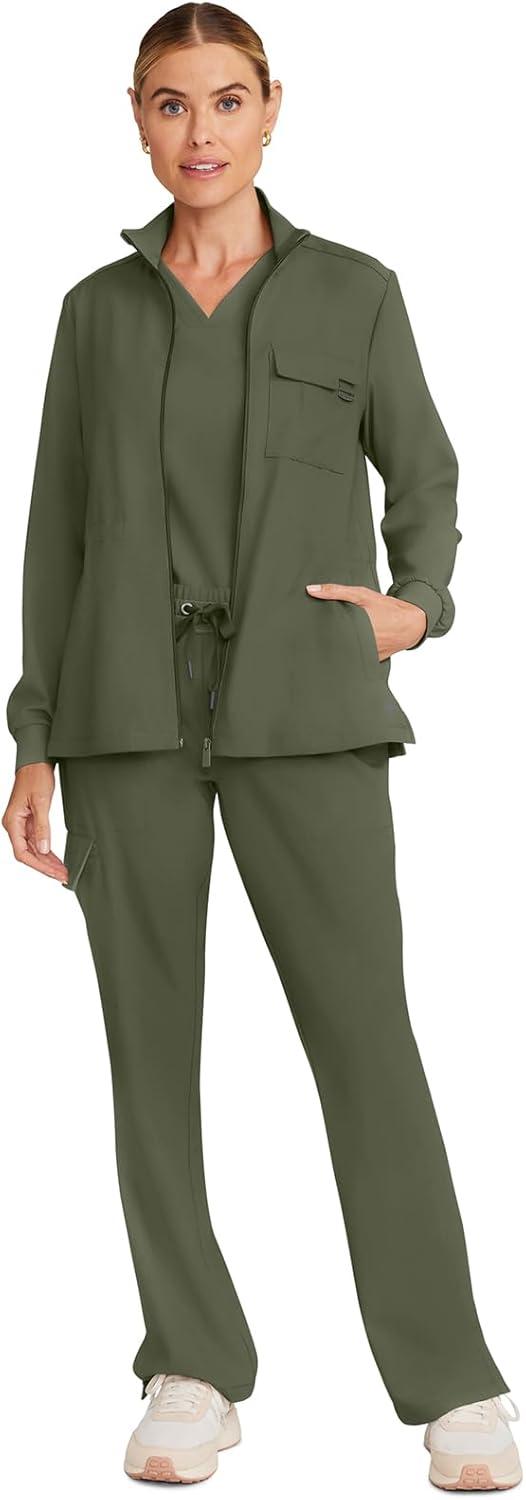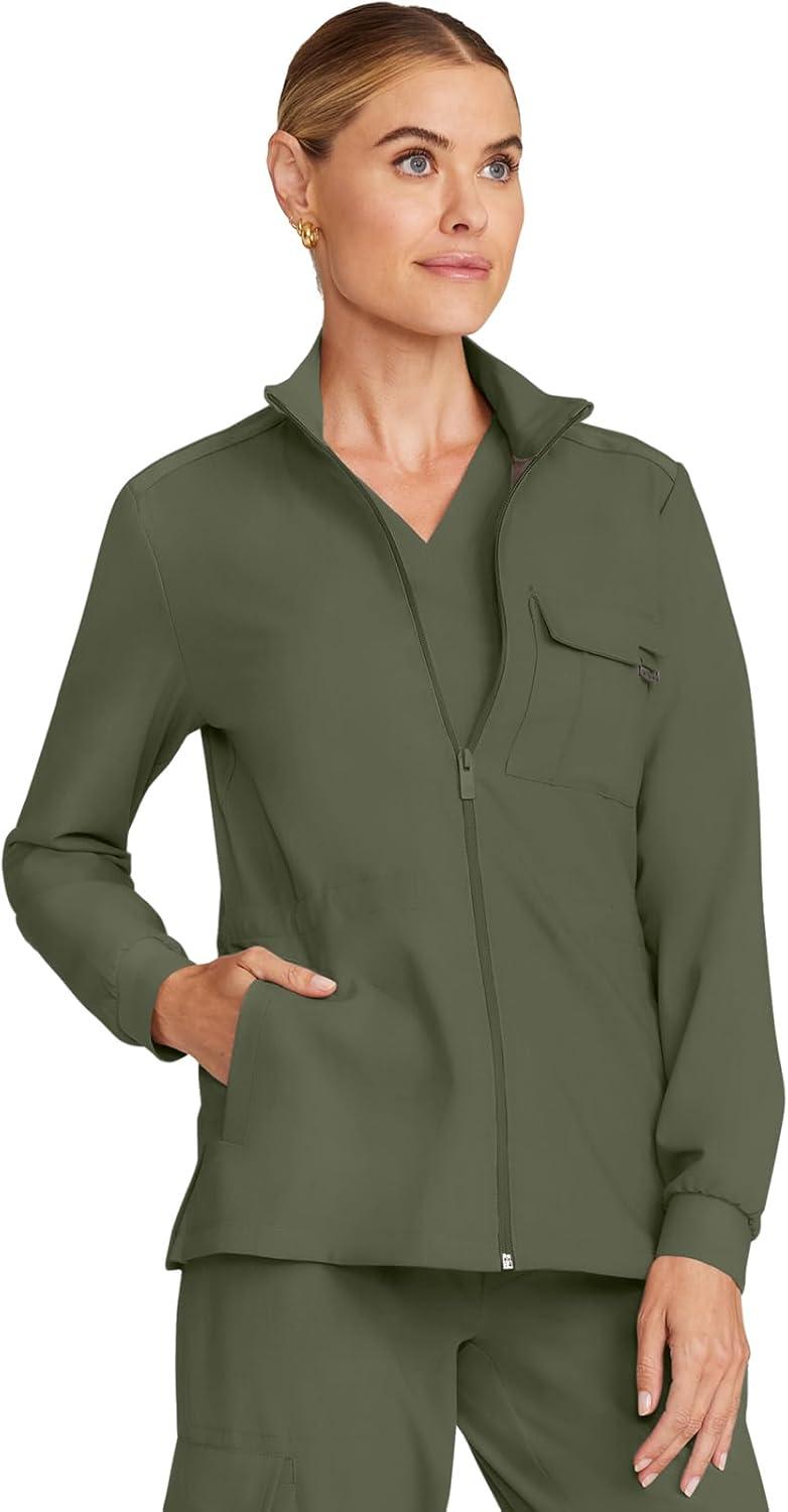 Healing Hands Scrub Jackets for Woman Zip-Front Utility Jacket with 4 Pockets HH360(Olive)