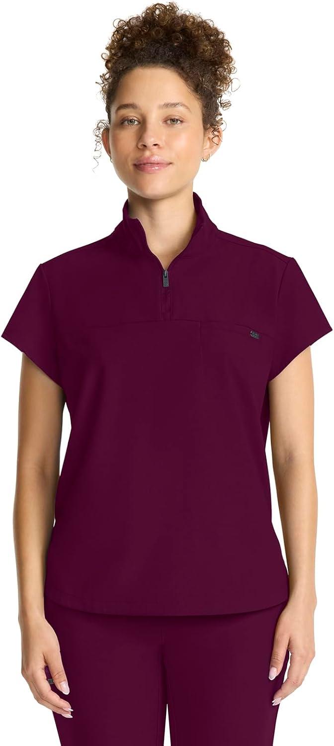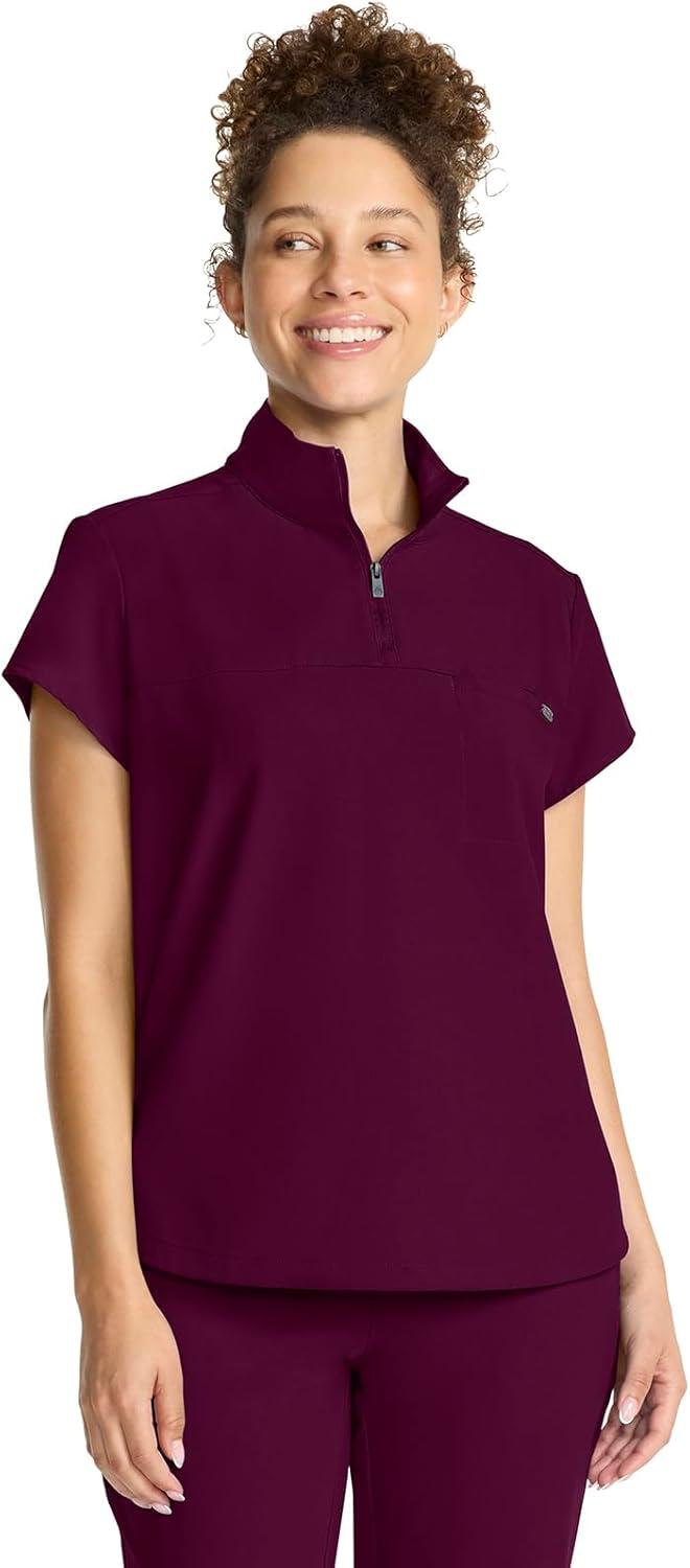 Healing Hands Scrubs for Women Scrub Top with Zip Stand Collar 360° Stretch HH752(Wine)