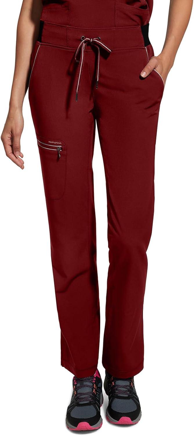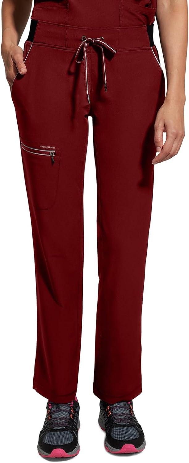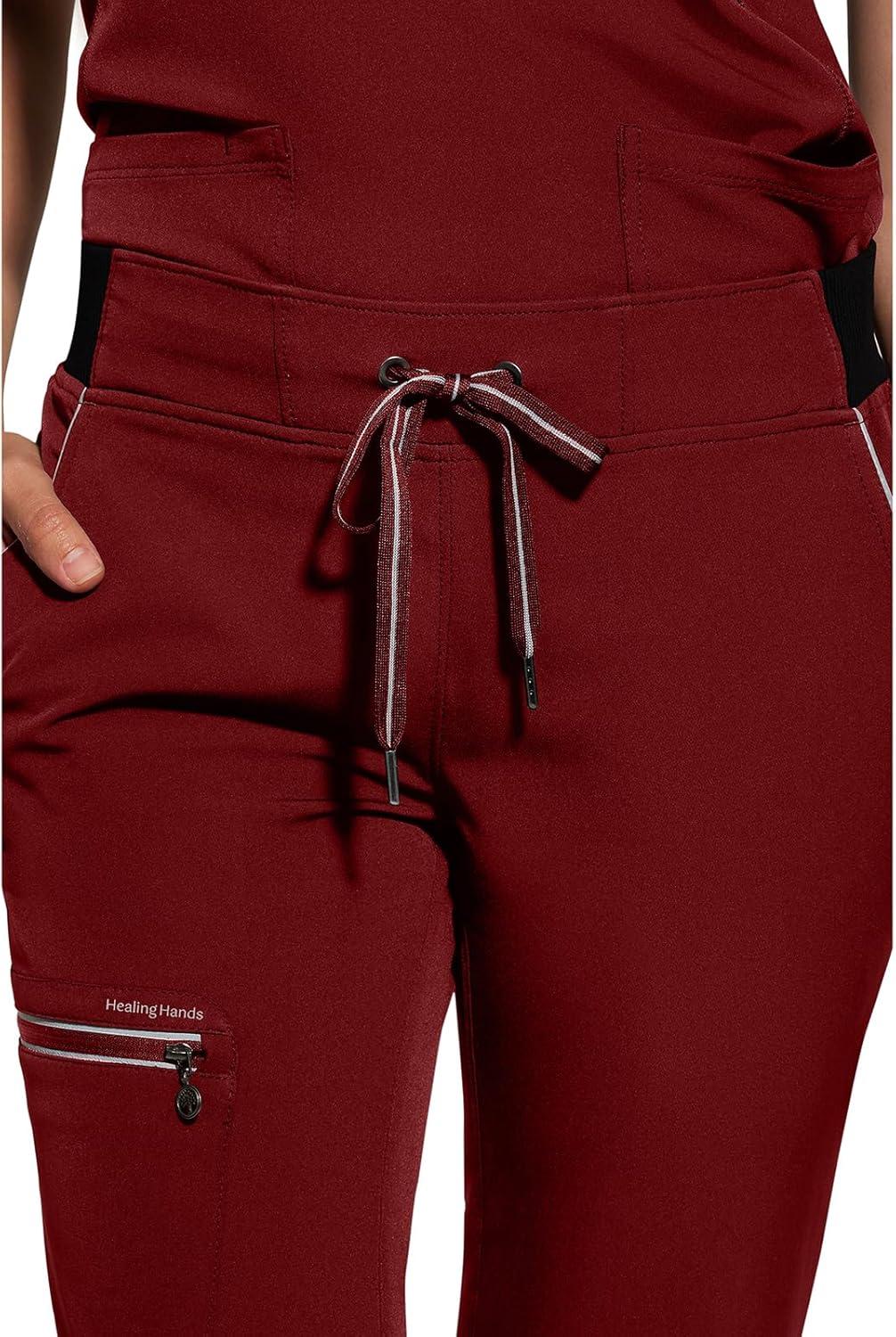 Healing Hands Women Scrub Pants with Rib Knit Waistband, Moisture Wicking, 360° Stretch and Recycled Fibers – 9152(Garnet Red)