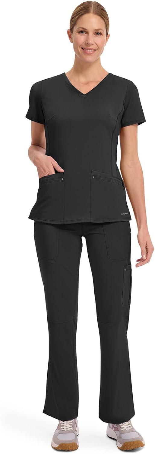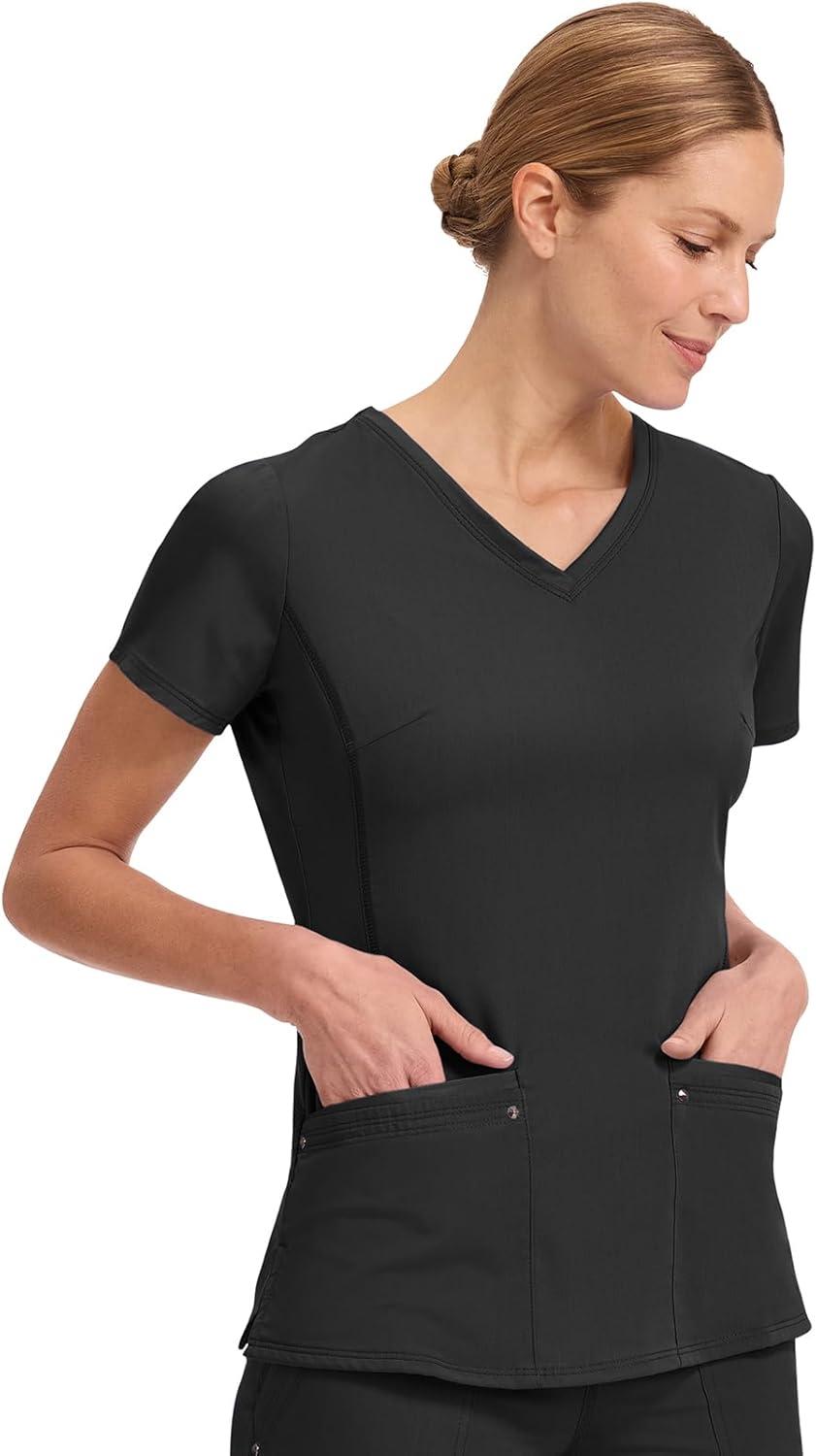 Healing Hands Women’s Scrub Top V-Neck with 2 Pockets, 2-Way Stretch, and Yoga Knit Side Panels for Slim Fit- 2245(Black)