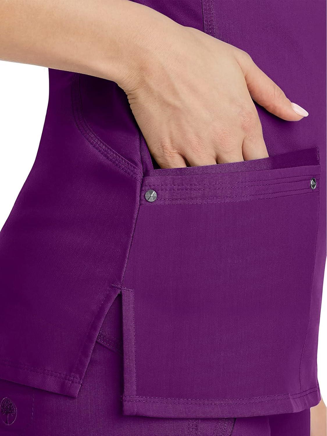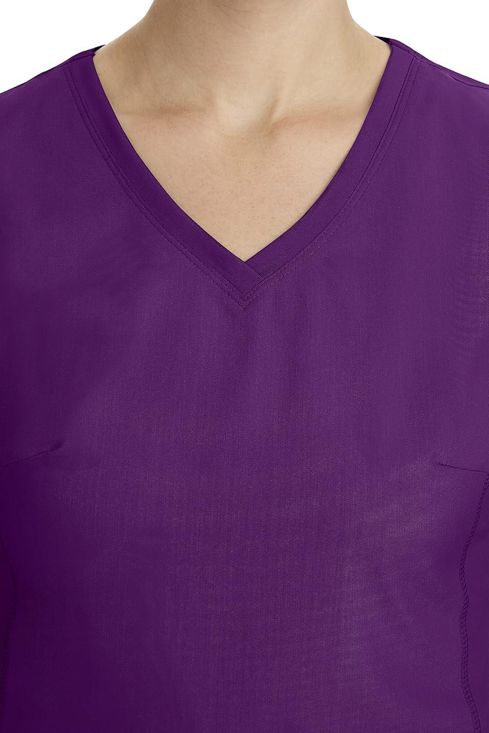 Healing Hands Women’s Scrub Top V-Neck with 2 Pockets, 2-Way Stretch, and Yoga Knit Side Panels for Slim Fit- 2245(Eggplant)
