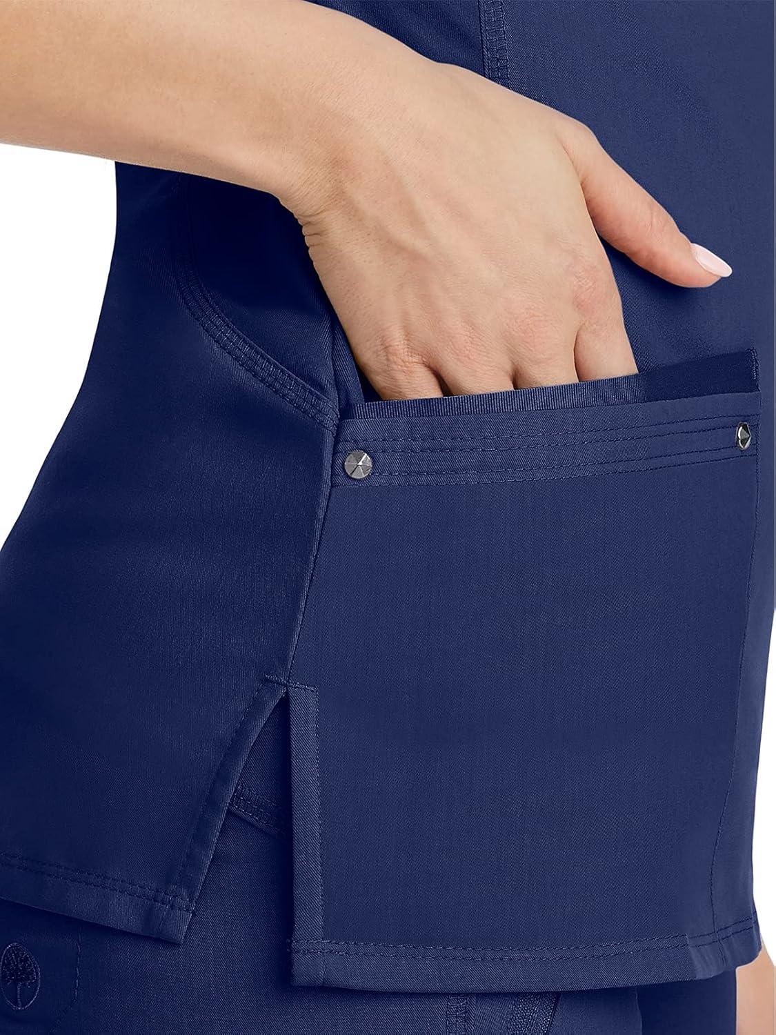 Healing Hands Women’s Scrub Top V-Neck with 2 Pockets, 2-Way Stretch, and Yoga Knit Side Panels for Slim Fit- 2245(Navy)