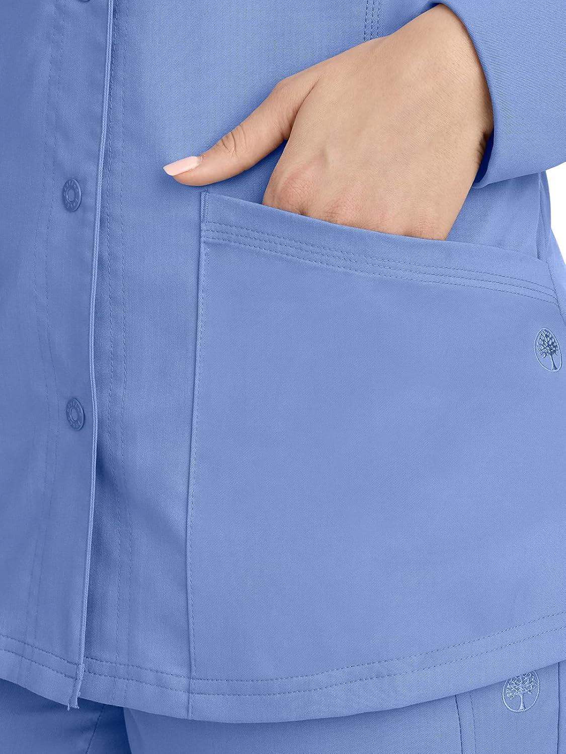 Healing Hands Women’s Snap Front Scrub Jacket Daisy 2-Way Stretch Uniform 5063(Ceil)