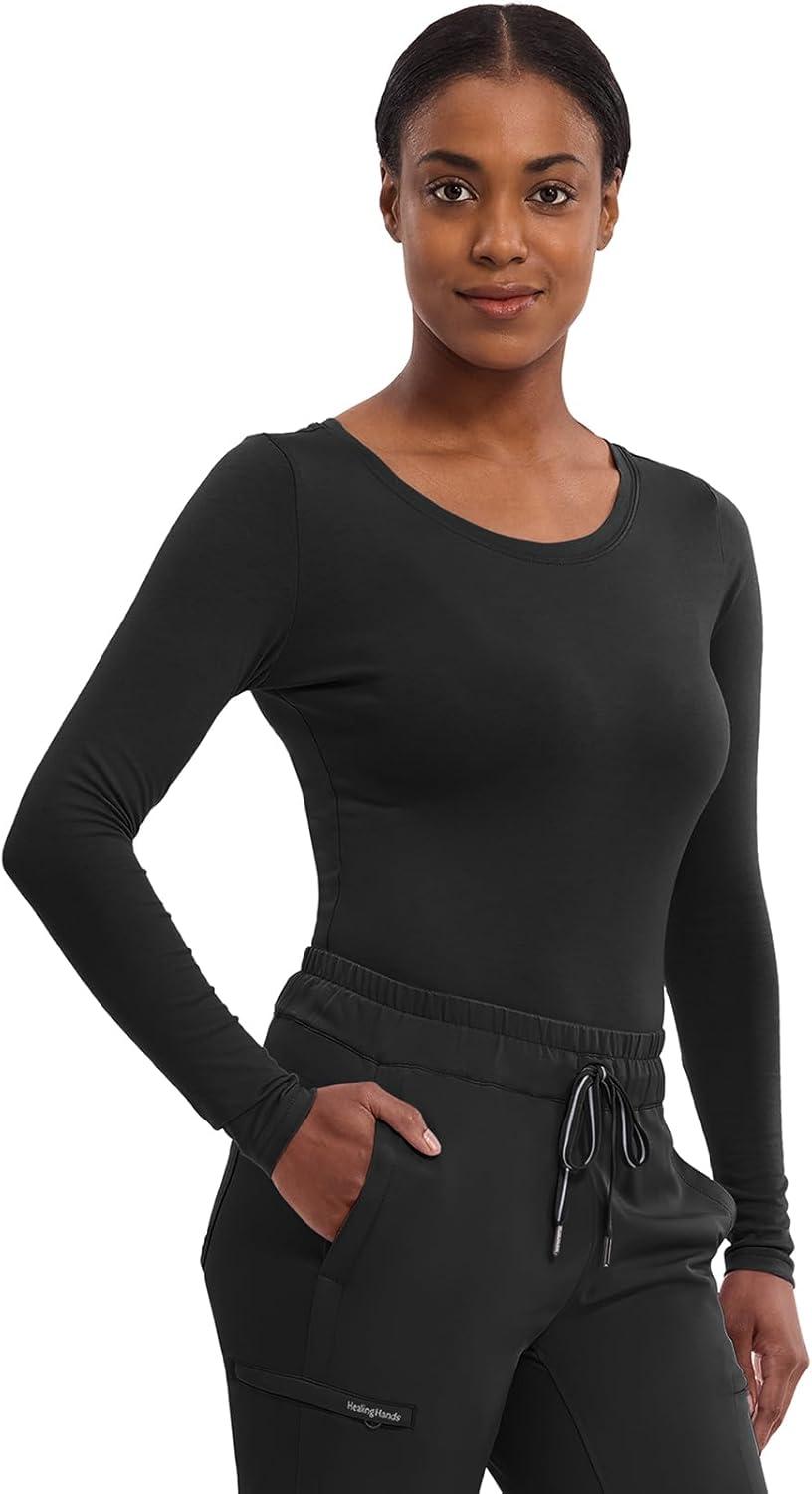 Healing Hands Women’s Underscrub Soft Knit Melissa Longsleeve Scrub Tee with Breathable & Easy Care Fabric 5047(Black)