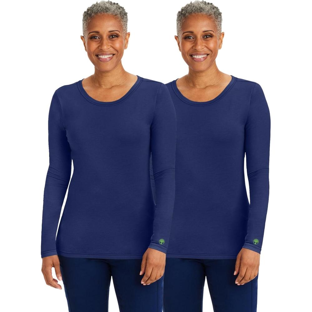 Healing Hands Women’s Underscrub Soft Knit Melissa Longsleeve Scrub Tee with Breathable & Easy Care Fabric 5047(Navy – 2 Pack)