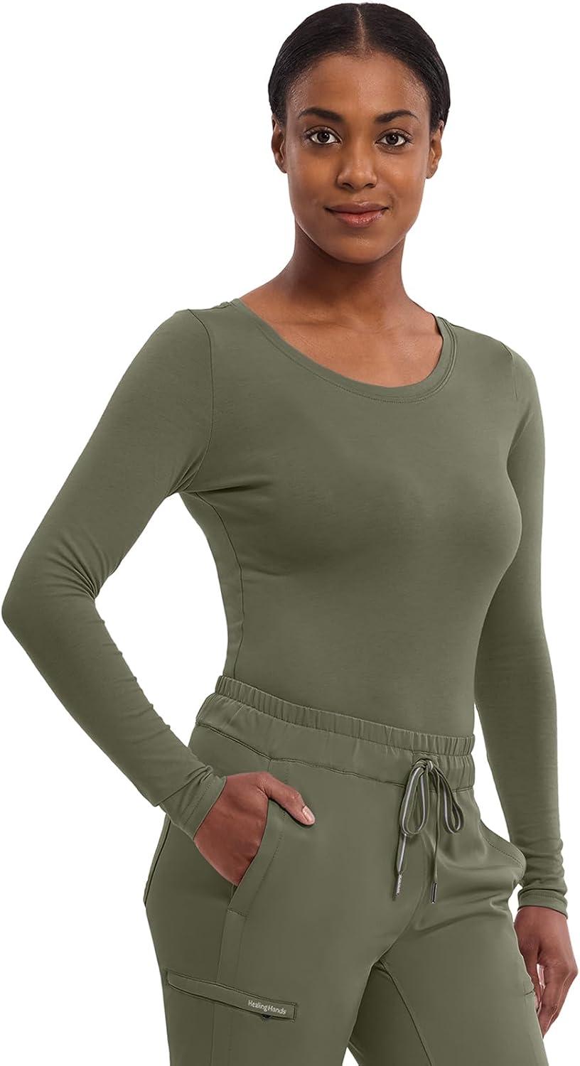 Healing Hands Women’s Underscrub Soft Knit Melissa Longsleeve Scrub Tee with Breathable & Easy Care Fabric 5047(Olive)