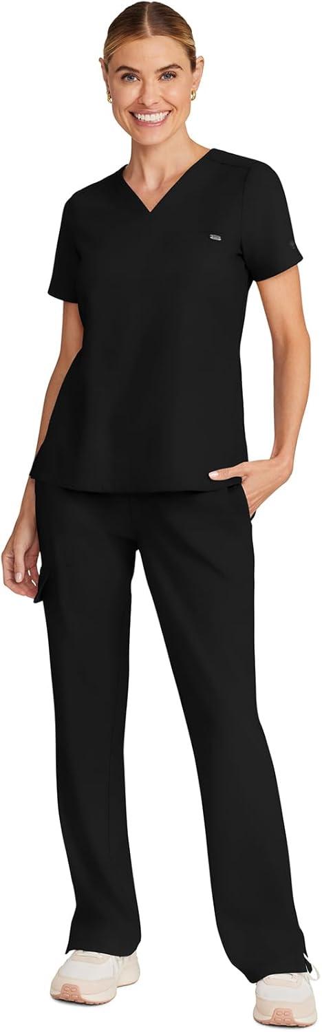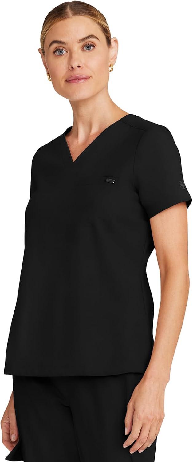 Healing Hands Women’s Tops V-Neck Scrub Top Tuck-in with Welt Chest Pocket HH755(Black)