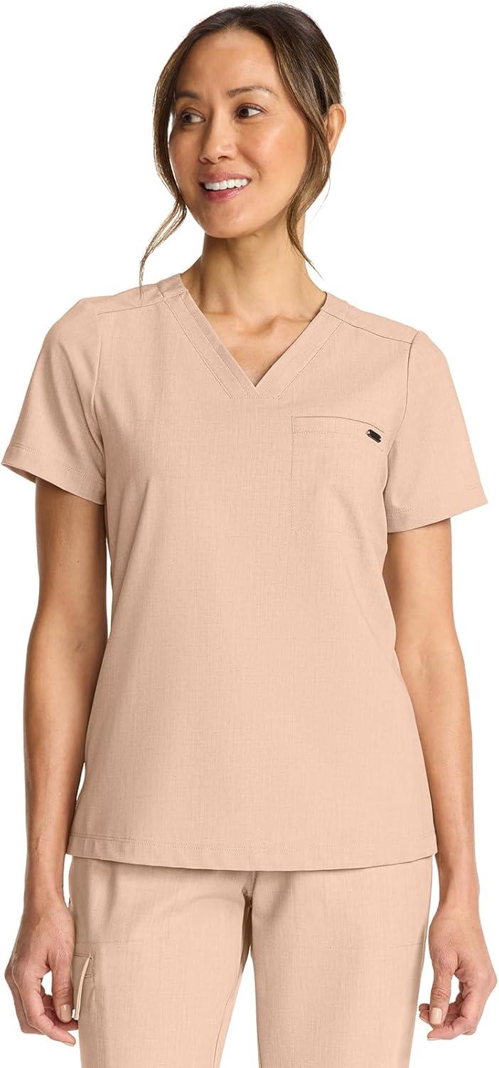 Healing Hands Women’s Tops V-Neck Scrub Top Tuck-in with Welt Chest Pocket HH755(Desert Taupe)