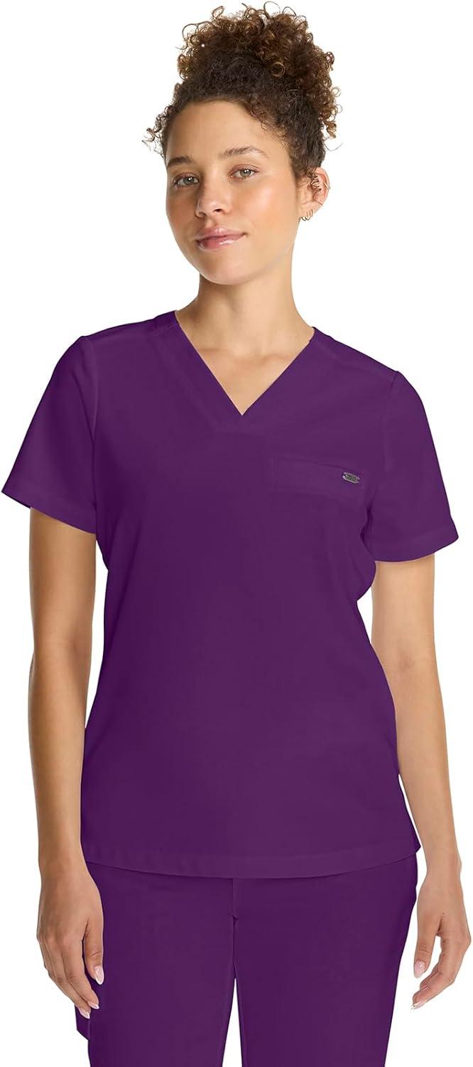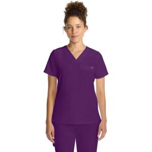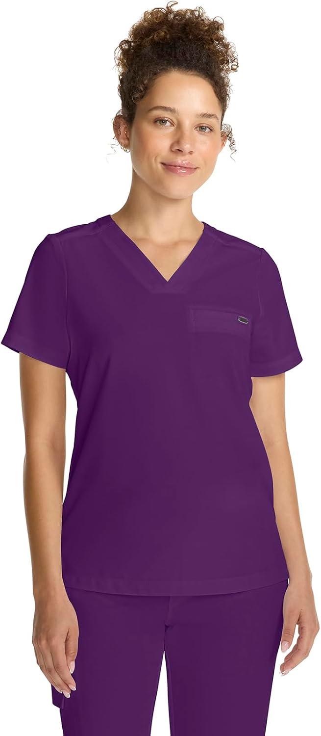 Healing Hands Women’s Tops V-Neck Scrub Top Tuck-in with Welt Chest Pocket HH755(Eggplant)