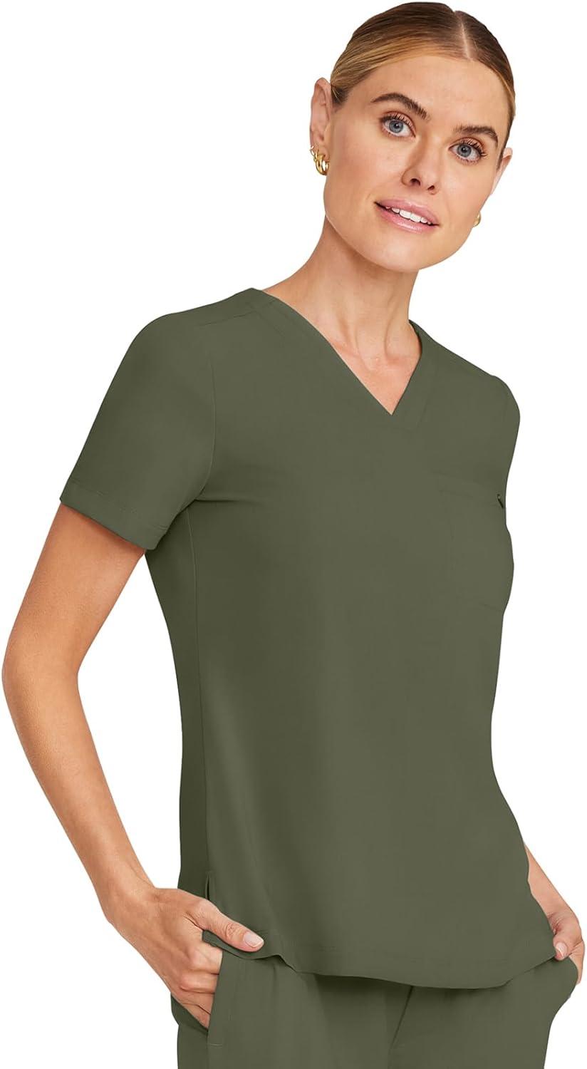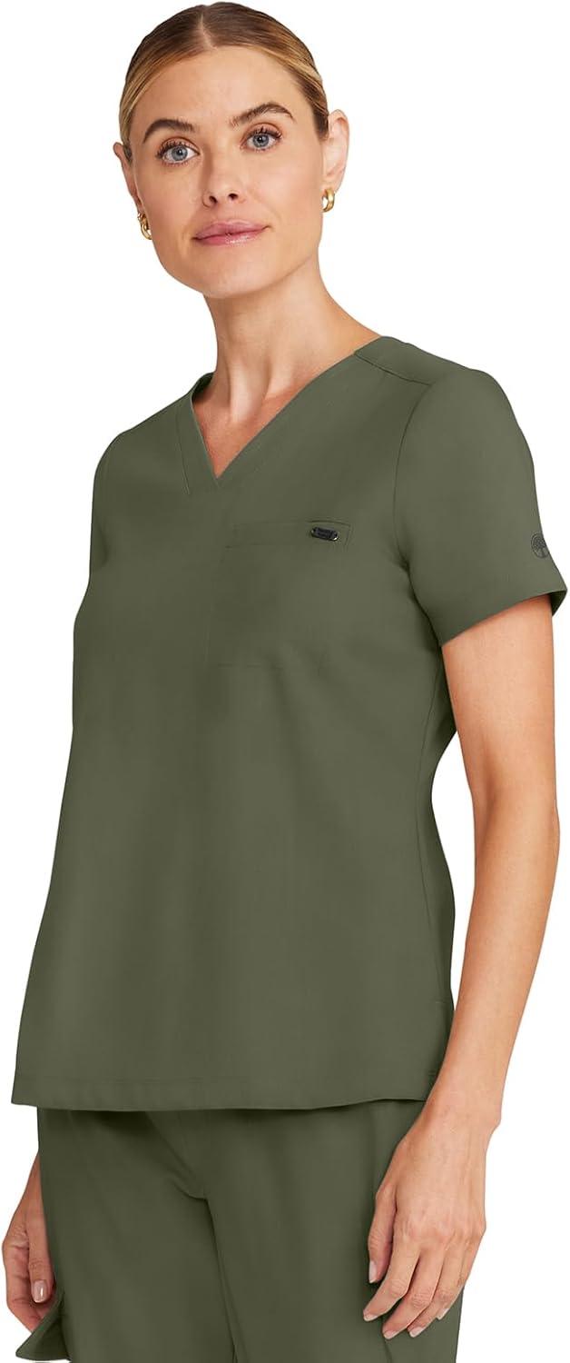 Healing Hands Women’s Tops V-Neck Scrub Top Tuck-in with Welt Chest Pocket HH755(Olive)