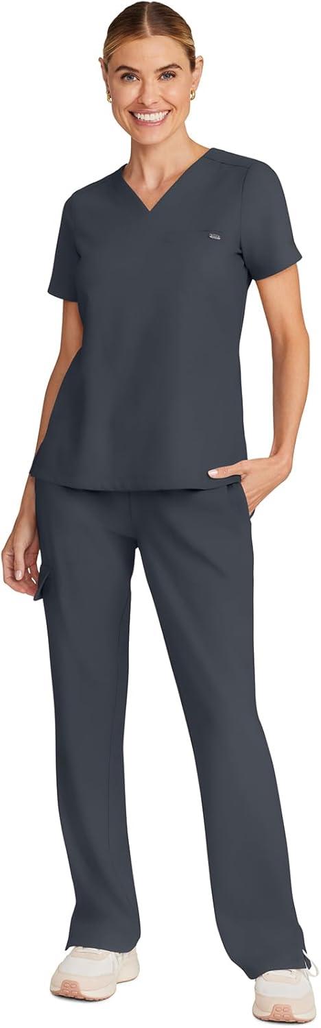 Healing Hands Women’s Tops V-Neck Scrub Top Tuck-in with Welt Chest Pocket HH755(Pewter)